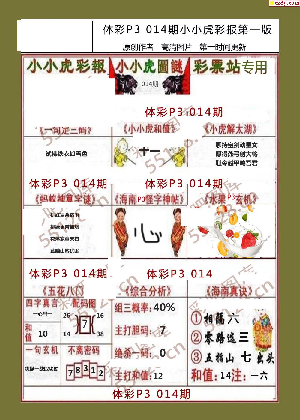 小小虎彩报014期体彩p3图谜